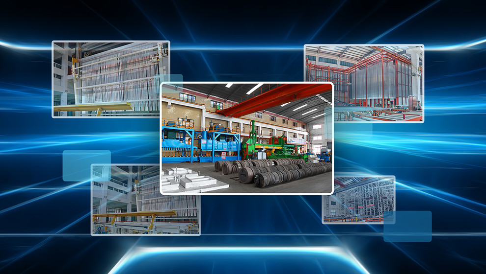 At present, the company has 65 internationally advanced aluminum extrusion production lines with the annual capacity of 400,000 tons. The intelligent production systems, such as the large-scale full-automatic vertical oxidation electrophoresis production line, the large-scale extrusion machine with the capacity of 5,000-7,000 tons in the South China and the full-automatic vertical storage etc are equipped for the industrial lightweight development.